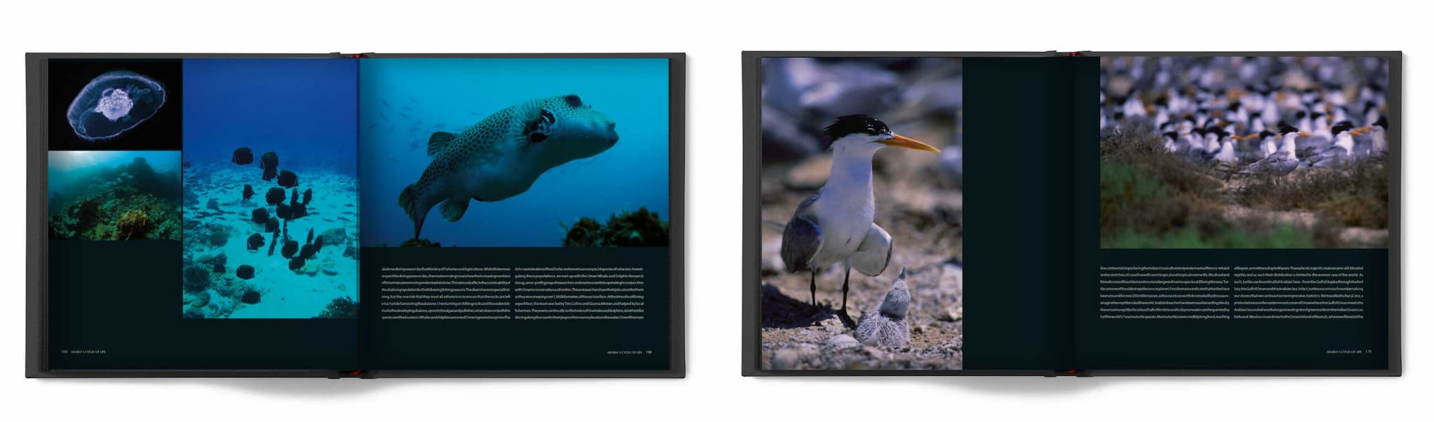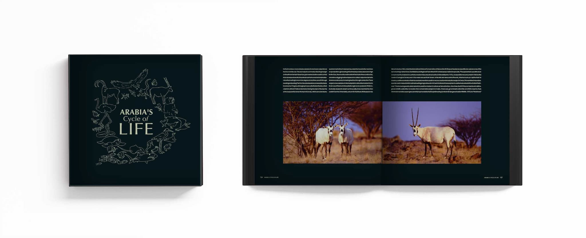 Den Bild- und Textautoren ist mit „Arabia’s Cycle of Life“ ein großer Wurf gelungen, denn Seite für Seite erfährt der Leser in beeindruckender Weise die Tücken der verschiedenen Lebensräume, den täglichen Überlebenskampf der Geschöpfe und die unnachgiebigen Gesetze der freien Wildbahn, aber auch deren paradiesische Schönheit, Artenvielfalt und natürliche Einmaligkeit. ALEKS & SHANTU verantwortete in diesem Projekt das grafische Gesamtkonzept, setzte Layout und Illustrationen um und lieferte redaktionelle Unterstützung. Dem Buch wurden die zuvor produzierten Filme auf DVD beigelegt, wofür ALEKS & SHANTU ebenfalls Cover und Label entwarf.