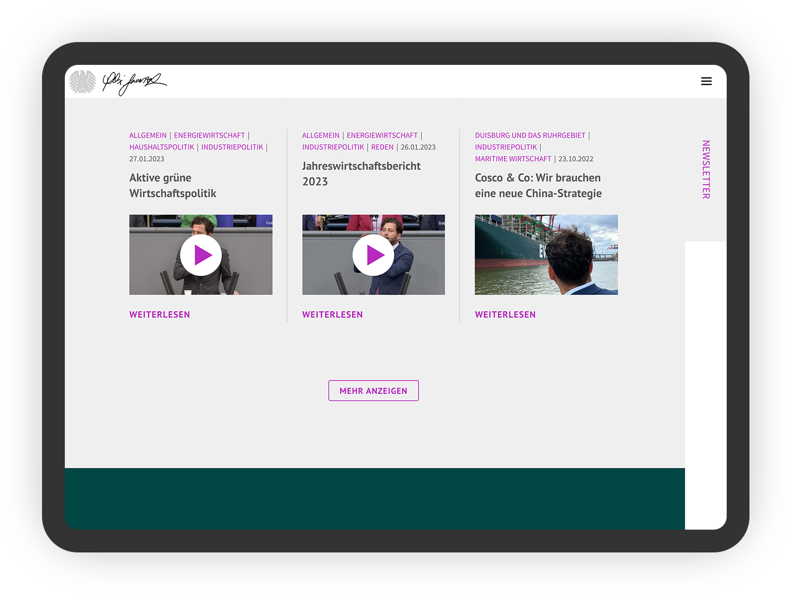 Authentizität und Nahbarkeit sind heute essenziell für kommende Wahlerfolge. Banaszaks klimaorientierte Politik lässt deshalb bei aller Internationalität seinen regionalen Wahlkreis und Ruhrgebiet-Themen nicht außer Acht. Dabei gehört der verbindliche Duisburger zu einer Politikergeneration mit einer jungen und zukunftsinteressierten Zielgruppe. Unser klares Webdesign überzeugte ihn und sein Team schon zu Beginn durch einen kreativen und funktionalen Charakter.