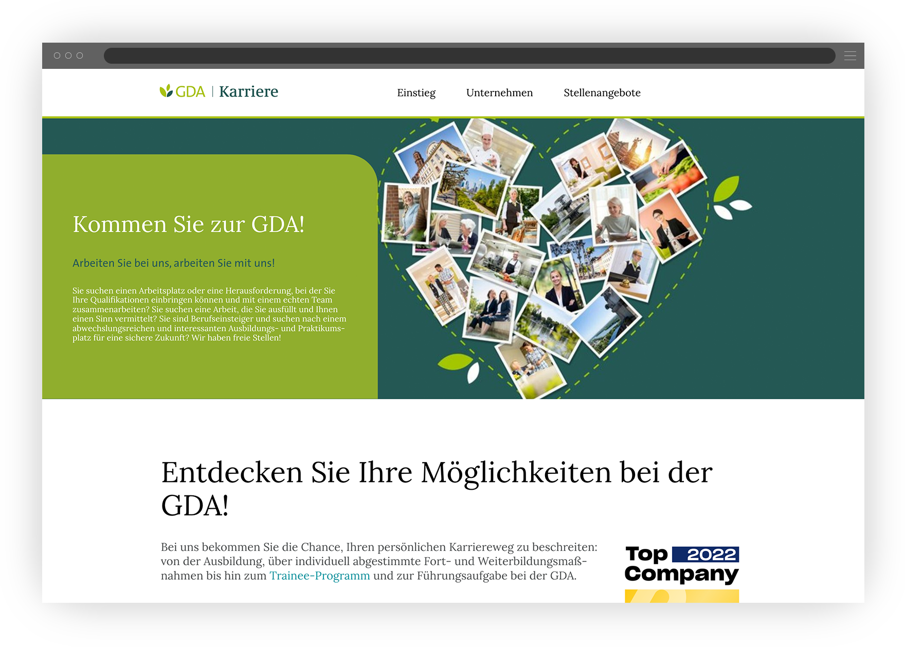 Durch die kreative und technisch sichere Ansprache sowie die Maßnahmen der individuellen SEO-Strategie gelang es, die Sichtbarkeit der GDA mit gezielten Keywords signifikant zu verbessern und sie im Ranking für potenzielle Interessenten attraktiver zu machen.