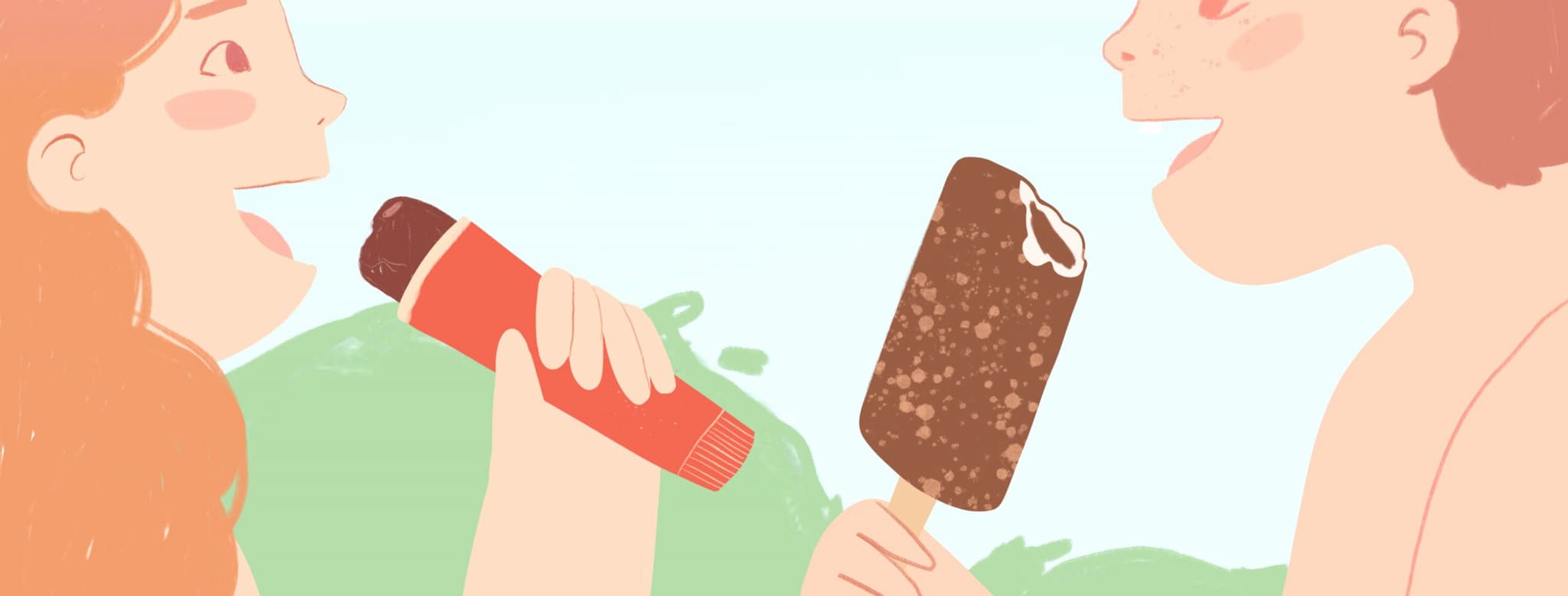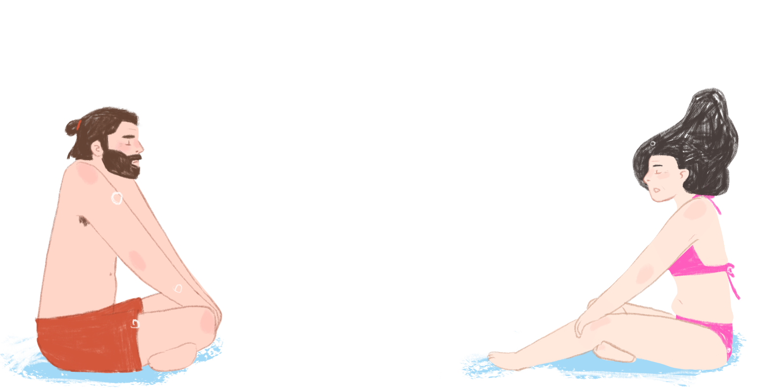 Für unsere 2D-Animationen bekam unsere Illustratorin zunächst einen Sprechertext, an dem sie sich vorsichtig orientieren konnte. Nun entwarf sie mit schnellem Schwung mehrere Figuren und Settings in einem handgezeichneten Stil, der flach wirkt, aber voller emotionaler Tiefe zu schweben scheint. Das Wasser ist durchsichtig und unser Motion-Design-Studio animierte die Schwimmer mit sonnigem Druck.